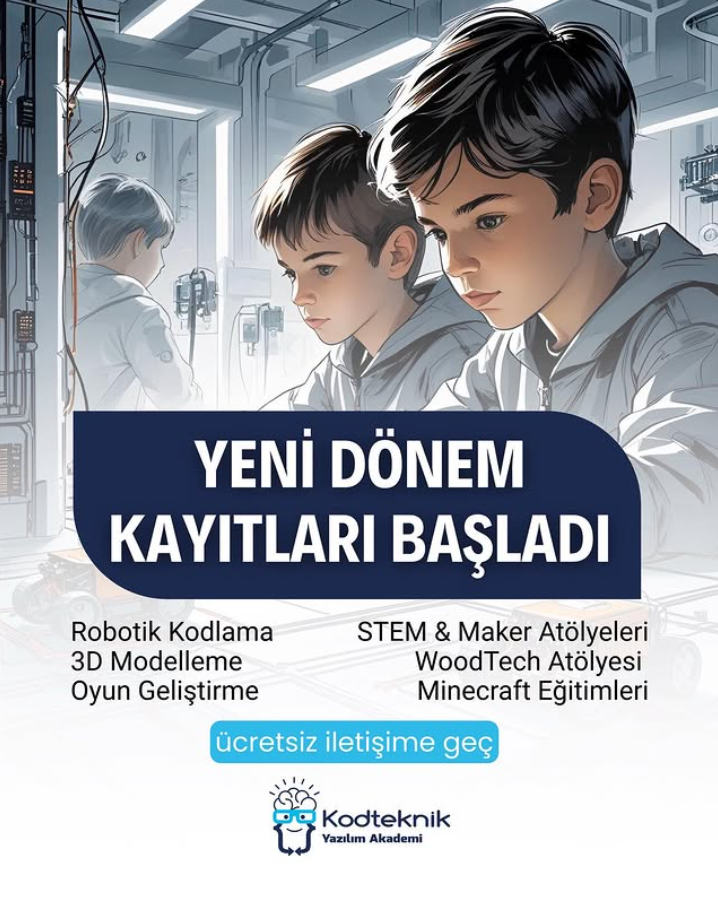 Kodteknik Akademi, geleceğin dünyasında söz sahibi olacak bireyler yetiştirmek amacıyla kurulmuş bir eğitim akademisidir. Kodlama ve robotik alanında verdiğimiz eğitimlerle, öğrencilerimize yalnızca teknolojiyi kullanmayı değil, aynı zamanda üretmeyi, geliştirmeyi ve yenilikçi çözümler tasarlamayı öğretiyoruz.